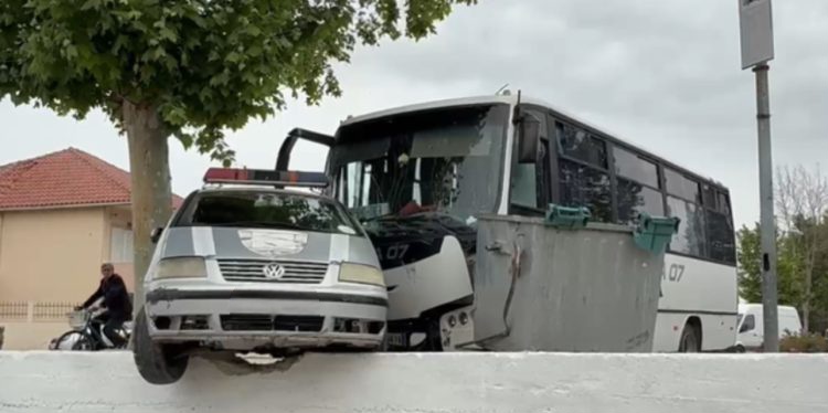 Paraprakisht dyshohet se autobusi i ka prerë rrugën automjetit të policisë bashkiake dhe për pasojë ka përfunduar në murin rrethues të një ish- kompleksi dyqanesh.