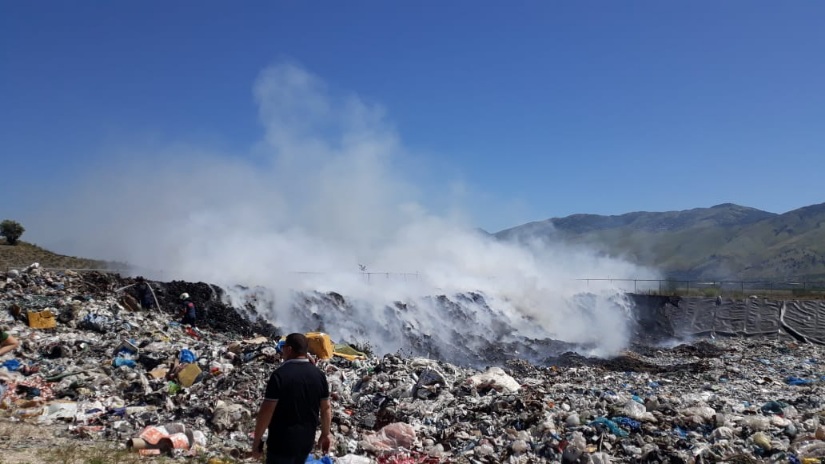 Shperthen zjarr ne vend grumbullimin e mbeturinave ne Libohove. Flaket e zjarrit po çlirojne ne ajer re te ndotur, duke e percjelle drejt zones se banuar.