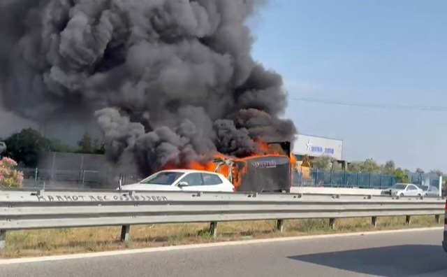 Një furgon është përfshirë nga flakët në autostradën Fier-Lushnje, në vendin e quajtur Vajkan.