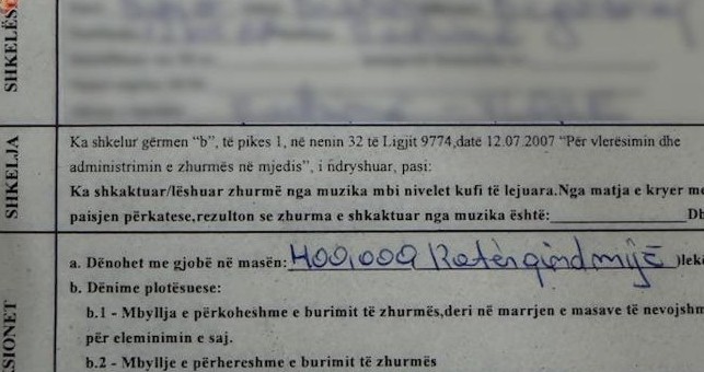 Një shtetas 57-vjeçar, pronari i një lokali është gjobitur me 4 milionë lekë pasi u konstatua se kishte vendosur muzikë pas orarit të lejuar në lokalin e tij në Radhimë.