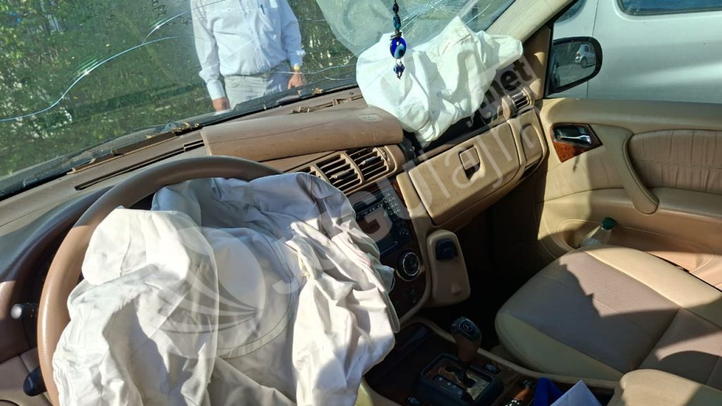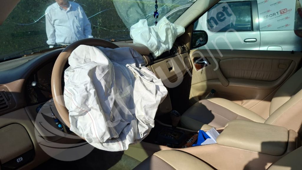 Duke mos respektuar asnjë sinjalistikë, ai ka hyrë në krahun e kundërt dhe është përplasur me automjetin që drejtohej nga shtetasi A.O. Përplasja ka qenë gjysmëfrontale dhe ka shkaktuar plagosje dhe dëmtime në kolonën vertebrale e gjymtyrë të shtetasit A.O. Ky i fundit ka rënë pa ndjenjë si pasojë e përplasjes. Goditja ka qenë mjaft e fortë aq sa janë aktivizuar dhe të dy balonat mbrojtëse të shoferit dhe pasagjerit, konkretisht të A.O. dhe të personit tjetër që ishte në krahë të tij (shih foton e mjetit).