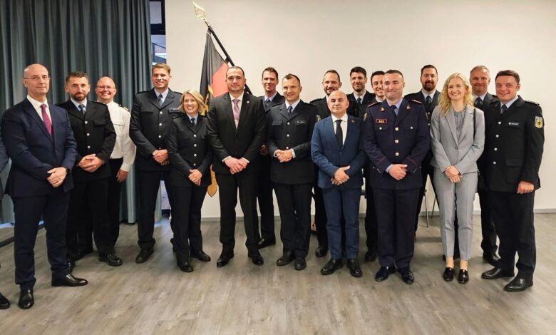 Me rastin e zhvillimit të ceremonisë së diplomimit të masterit të Kryekomisar Emilijano Resulaj, në programin e studimit “Administrata Publike – Menaxhimi i Policisë”, të Universitetit Gjerman të Policisë, Drejtori i Përgjithshëm i Policisë së Shtetit Drejtues Madhor Ilir Proda dhe delegacioni që e shoqëronte, morën pjesë në ceremoni, si dhe zhvilluan një sërë takimesh të rëndësishme në interes të forcimit të bashkëpunimit me partnerët gjermanë.