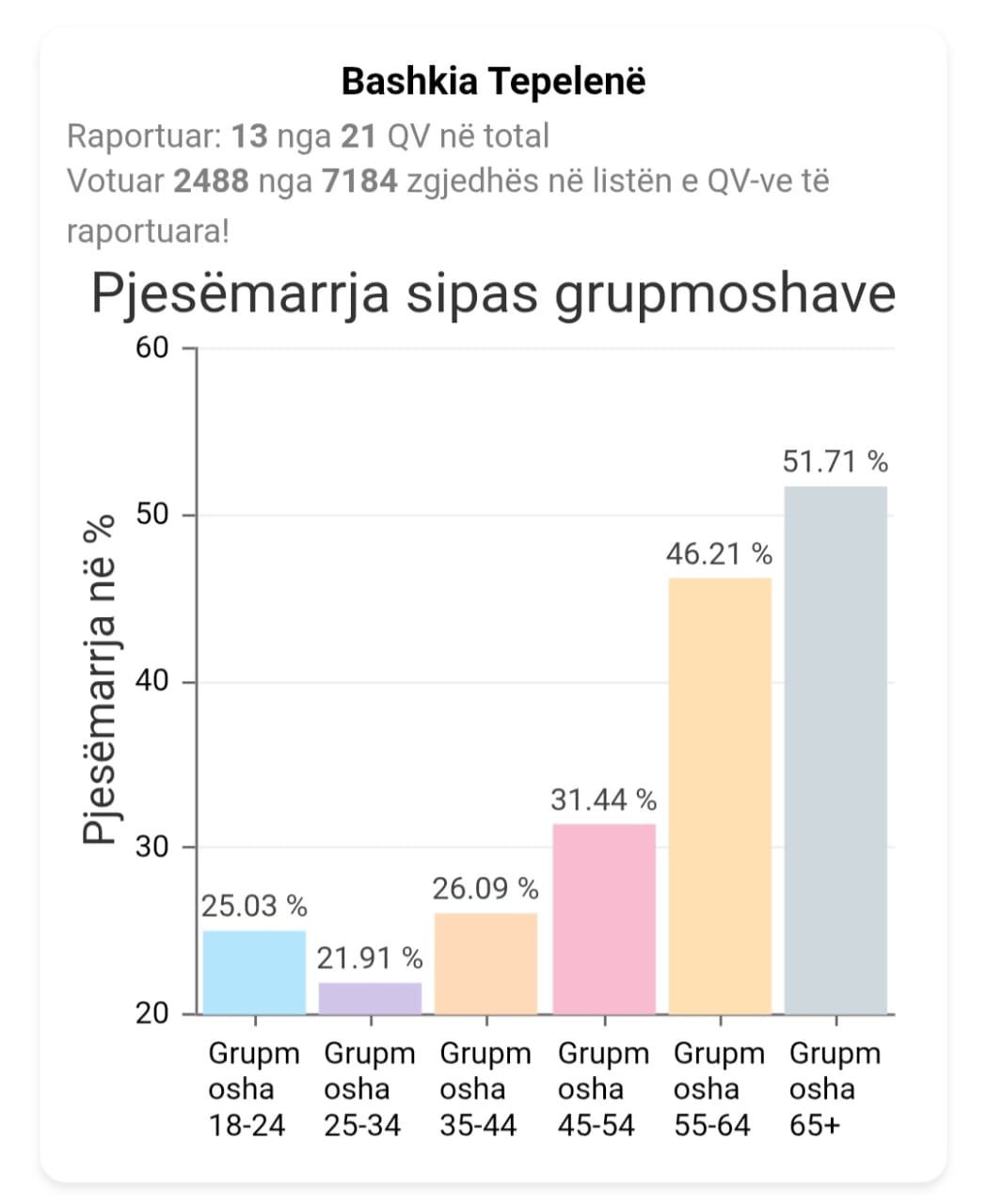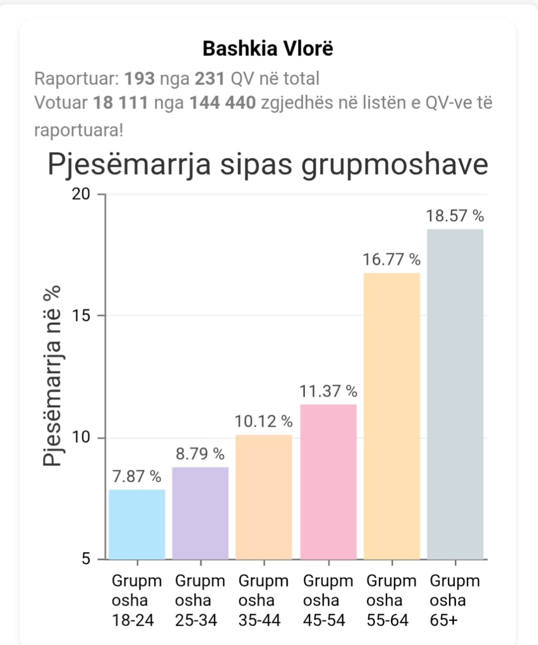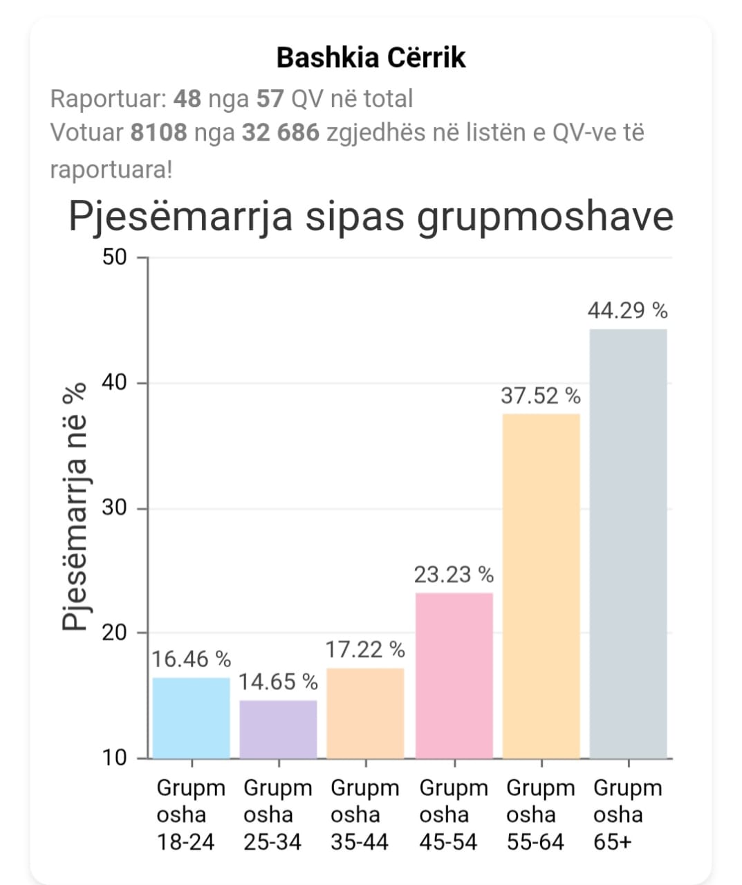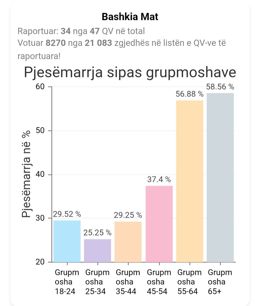 Ajo që ra në sy në këto zgjedhje, sipas statistikave zyrtare nga KQZ, ishte pjesëmarrja e ulët në votime dhe statistikat mbi moshat e votuesve këtë të dielë.
