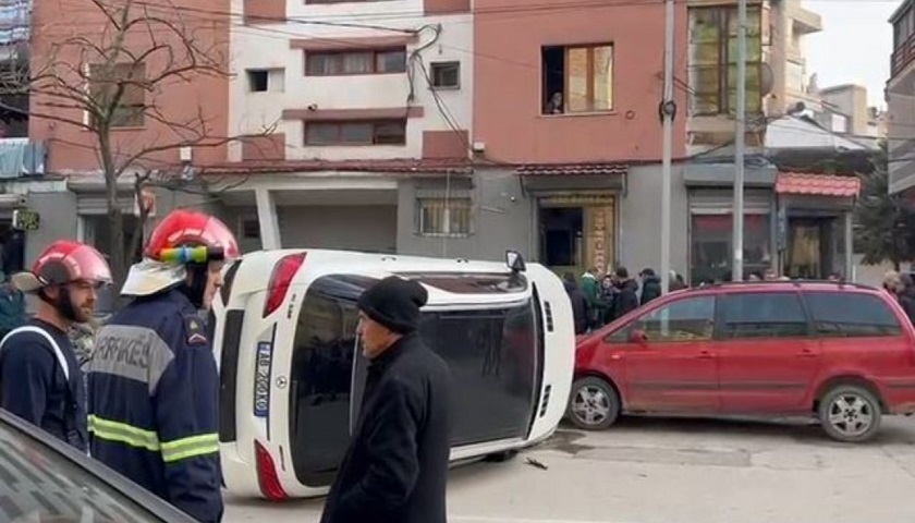 Mësohet se një automjet tip “Benz ML” ka humbur kontrollin dhe është përplasur me një automjet, i cili ishte parkuar në një anë të rrugës. Si pasojë e goditjes së fortë, automjeti është përmbysur në rrugë.