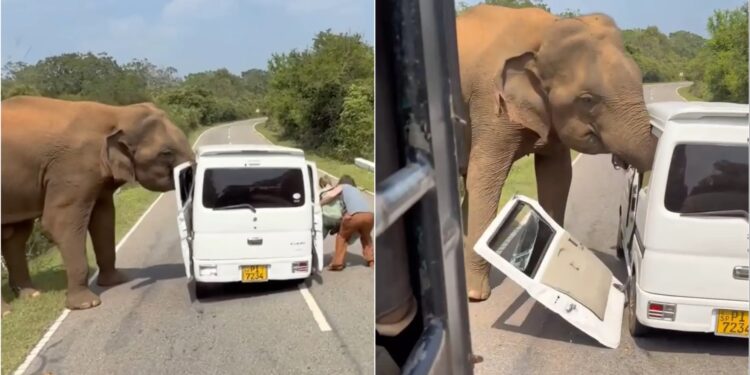 Një moment tej mase tmerrues është regjistruar gjatë një safari në Sri Lanka, ku një elefant rreth tre tonë sulmoi një minifurgon me turistë.