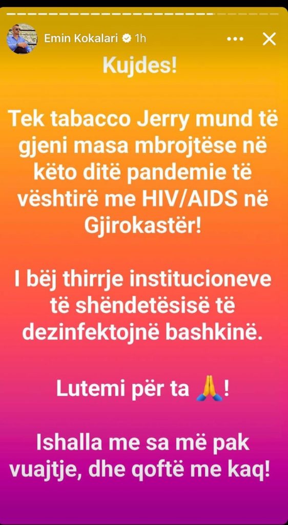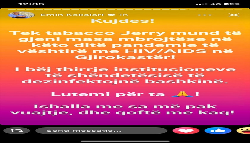 Mesohet se Emin Kokalari, qytetar nga Gjirokastra 33 vjec, eshte shoqeruar sot ne ambjentet e Komisariatit te Gjirokastres, fill pas kallzimit te bere nga Bashkia e Gjirokastres per vepren penale te “Perhapjes se panikut”.