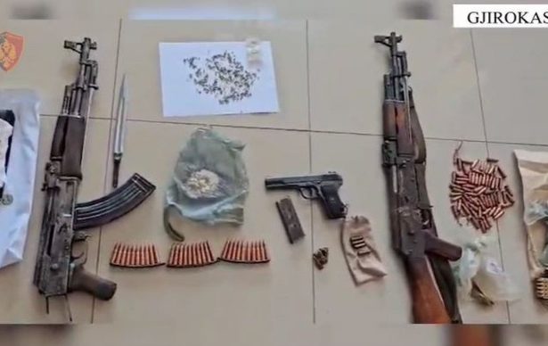 VIDEO/Arrestohen babë e bir në Gjirokastër, 1 i arrestuar edhe në Bënçë, shpallen në kërkim 2 të tjerë, posedonin armë dhe lëndë narkotike