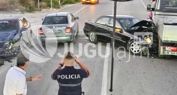 LAJM I FUNDIT!!(FOTO)Aksident i 3-fishtë, “Benzi” përplaset me “Opelin” dhe kamionçinën, plagoset 1 grua